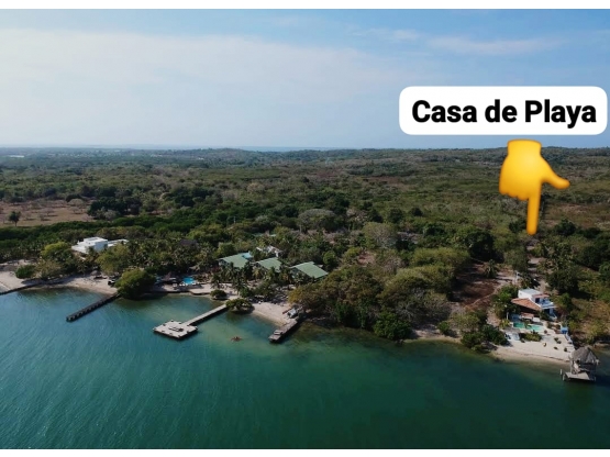 El Área de la propiedad privada s de 5.000 mts2 con 21 mts2 frente a la playa tiene Muelle construida. Tiene una Piscina de agua salada. Tanque de agua 70 toneladas. Planta eléctrica 6 horas. 4 alcobas. Alcoba y baño de servicio. baños sociales.